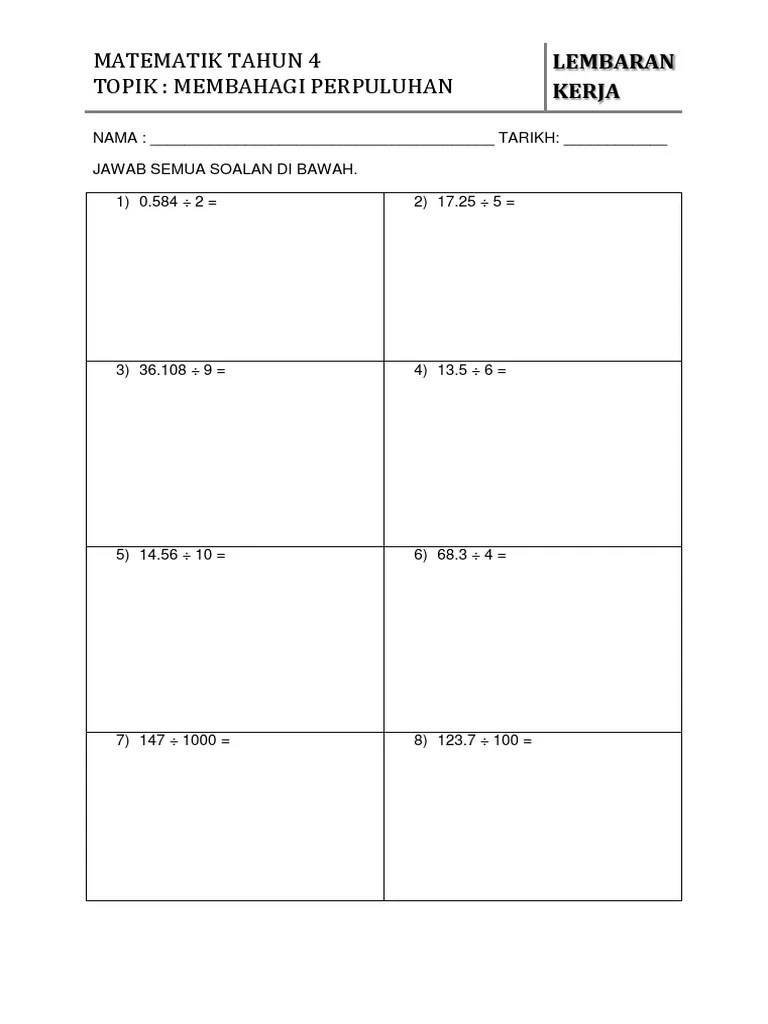 Contoh Latihan Pecahan Tahun 4 - Latihan Ulangkaji Matematik Tahun 4 Kssr 1 Hitung Jumlah Bagi 87 386 Dan 4 979 2 Tulis 89 430 Dalam Perkataan 3 Cerak Latihan